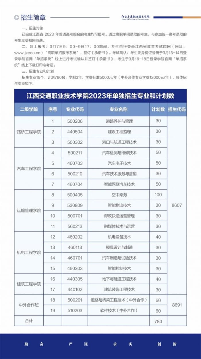 江西交通职业技术学院2023年单独招生简章